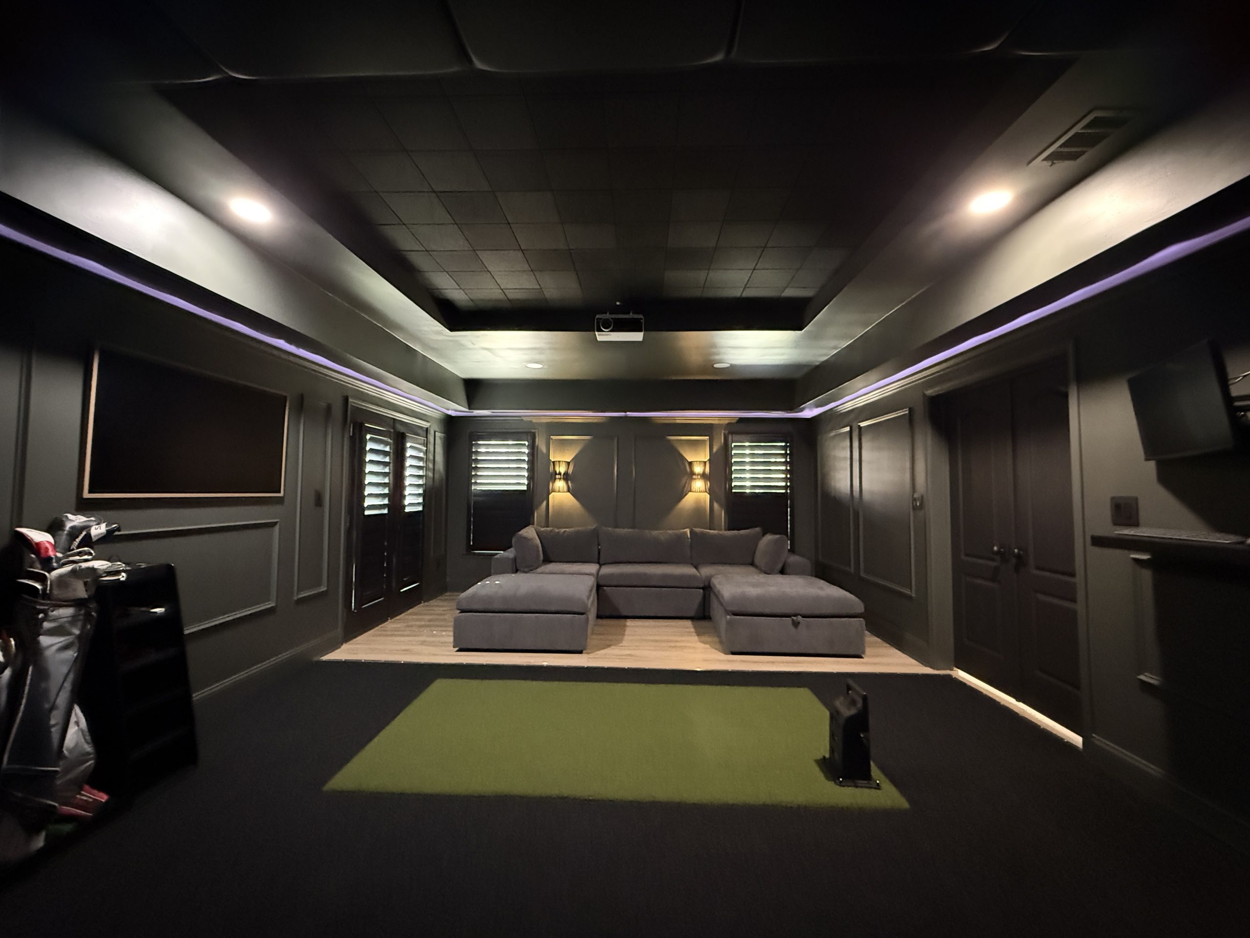 For those seeking an even more seamless experience, we offer the BuildAssist+ program. This enhanced service includes everything from our standard BuildAssist program, plus the added benefit of having our technology specialists on-site to handle the installation and integration of your technology including PC’s, TV’s, monitors, projectors and one touch automation. Our proprietary One-Touch Automation system allows you to effortlessly control the entire system—golf simulator, projector, TVs, monitors, computer, lighting, and sound—via a single iPad or keypad interface.