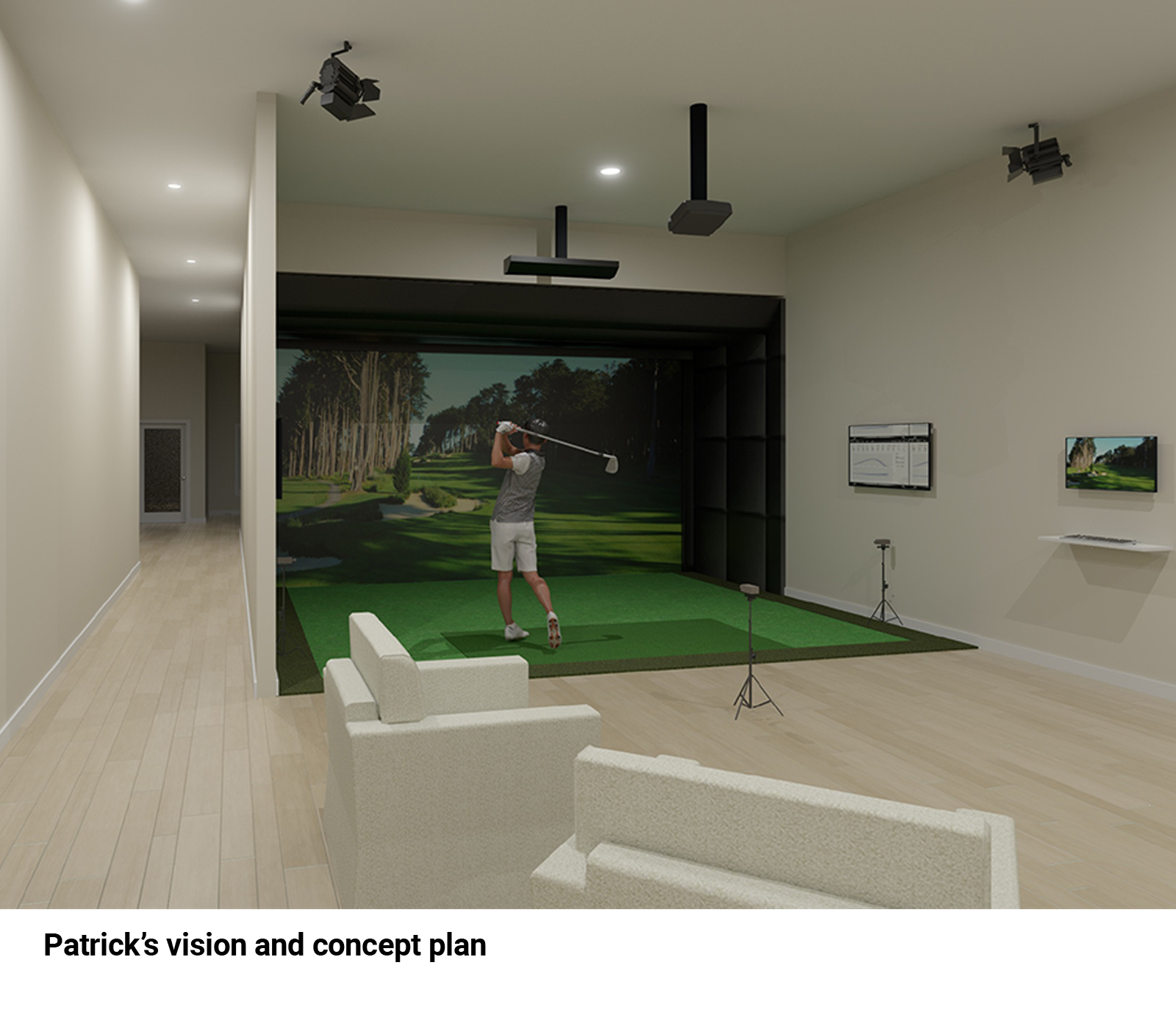 The transformation was a significant financial venture. Each investment, under Design2Golf’s guidance, was meticulously planned to ensure maximum ROI. This financial plan included a breakdown of design, and construction costs per bay, encompassing pre-build-out and wiring while also providing detailed cost analysis for golf simulation hardware, screens, projectors, launch monitors, and software/licenses.
