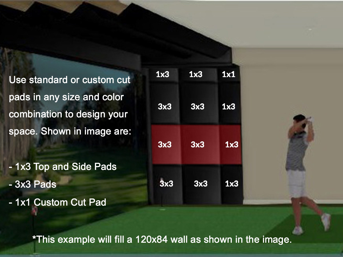 In planning out which pieces you’ll need, you can also get creative with our color pad options to give your simulator a customized feel. If your pad configuration plan has a gap, we would recommend placing the gap at the bottom of the room. Here at D2G, to make it easy to accommodate any surface dimensions, we offer a variety of pad sizes: